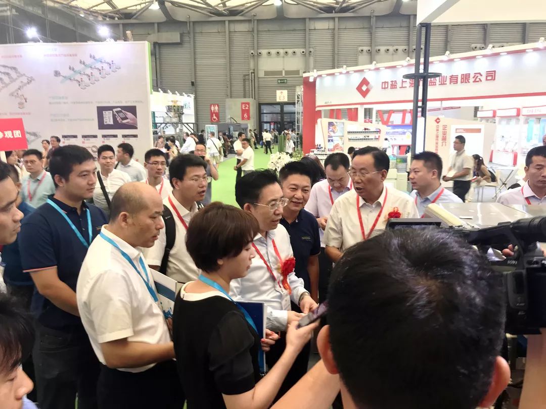 高端現(xiàn)代化的包裝生產(chǎn)線和設(shè)備,吸引了各大鹽業(yè)公司領(lǐng)導和中國鹽業(yè)協(xié)會會長茆慶國先生的高度關(guān)注。隨后的茆慶國會長攜中國鹽業(yè)協(xié)會領(lǐng)導及各大鹽業(yè)公司領(lǐng)導一行蒞臨我司展位參觀指導